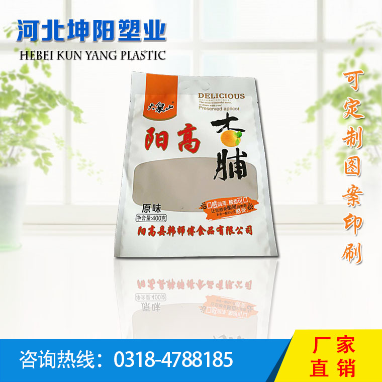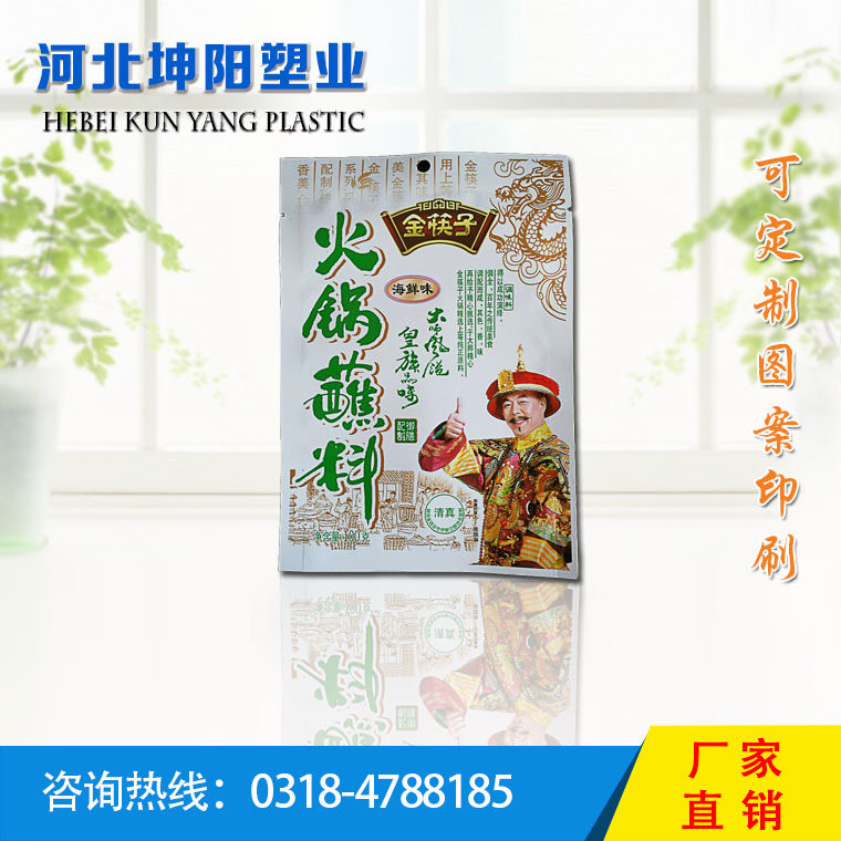 ? ? ? ? 河北坤陽塑業(yè)有限公司是一家集定制,設(shè)計,印刷于一體的包裝袋生產(chǎn)企業(yè),本公司擁有十色印刷機(jī)、高速復(fù)合機(jī)、制袋機(jī)等設(shè)備,專業(yè)生產(chǎn)食品袋、真空袋、拉鏈自立袋、鋁箔袋、火鍋調(diào)料袋、奶食品袋、醬菜袋、五邊封袋、高溫蒸煮袋、UV印刷復(fù)合袋、易揭封口蓋膜及各種包裝復(fù)合膜、超市專用手提袋、手撕袋、托盒等。公司歡迎各界人士前來咨詢洽談。